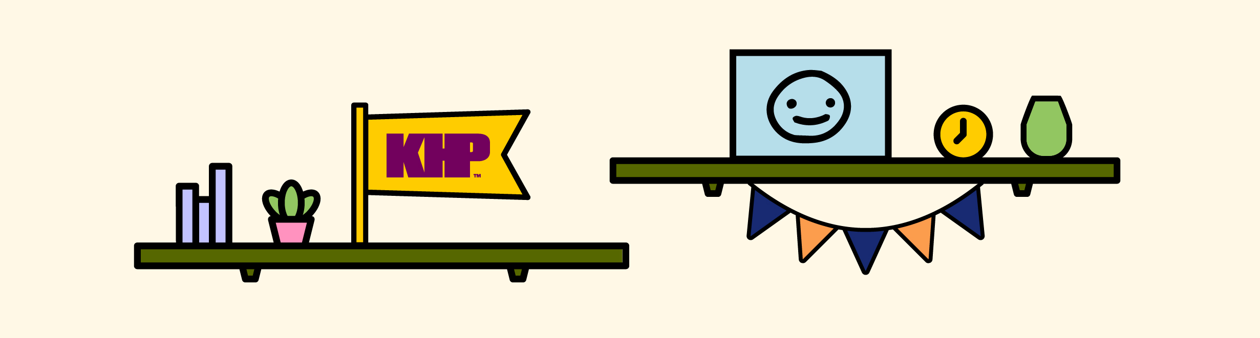 In KHP’s waiting room on this web page, you can tap on objects / characters to reveal wellness resources. For example, tap the colouring book in the image to open info about KHP’s mindfulness colouring activity. Follow the link to try it or tap the "X" button to keep exploring the room.